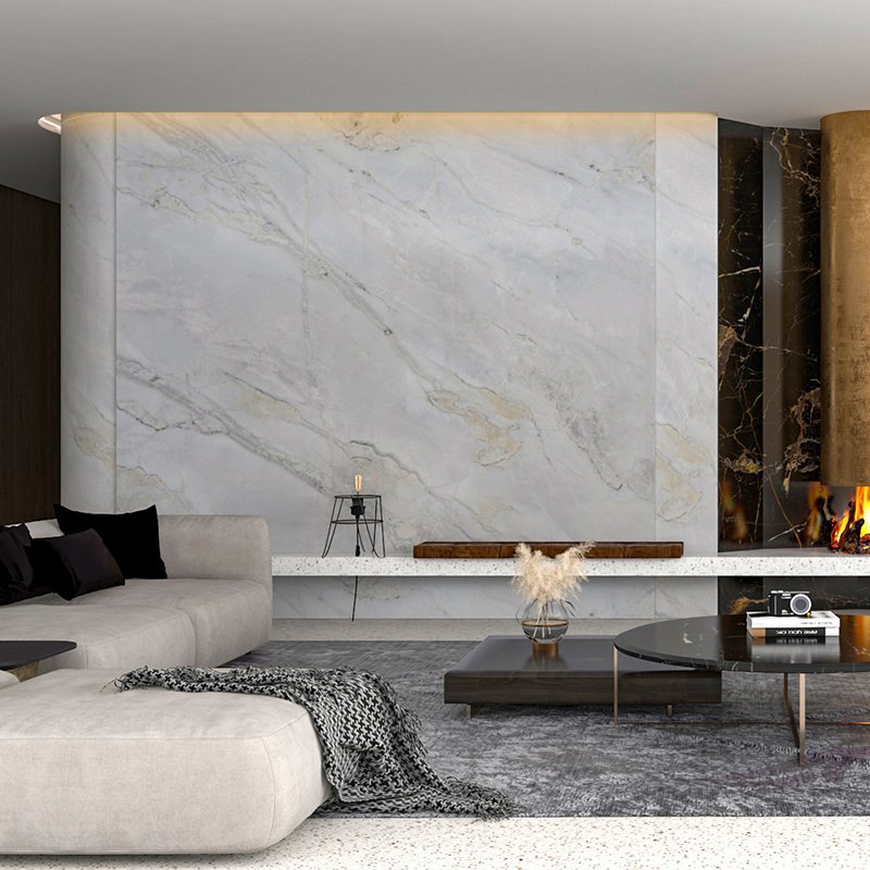 Эволюция белого цветаХотя чисто белый мрамор по-прежнему популярен, Galaxy White добавляет новый уровень сложности. Тонкие, теплые оттенки золота не позволяют ему казаться холодным или стерильным, что делает его невероятно универсальным как для современного, так и для классического дизайна.
