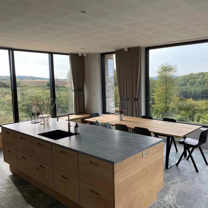 Предлагая универсальное решение для внутренних и наружных помещений, этот материал одинаково функционален как для кухонных столешниц и барных стоек, так и для наружных стен и полов.