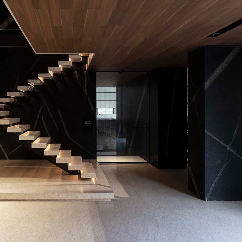 Этот черный гранит, отличающийся минималистичной изысканностью и эффектными золотистыми прожилками в виде молний, преимущественно используется для облицовки фасадов премиум-класса и напольных покрытий в интерьере, где он создает смелый и запоминающийся образ.